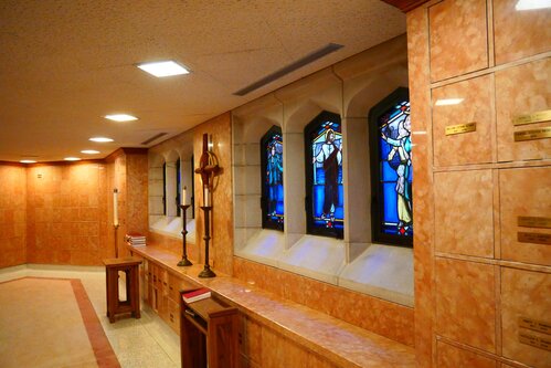 A modem columbarium is a structure lined with recesses for urns containing cremated remains. Thus, landlocked city churches are able to offer a final resting place for the faithful departed. Cremation is a practical way of providing interment within the church building itself, as was common historically.