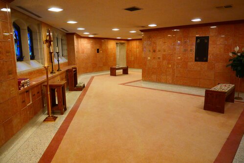 The Columbarium contains 1,154 standard niches designed to accommodate two urns, 78 large niches to hold four urns, and one family niche for 12 urns. There are a total of 1,233 niches capable of receiving 2,632 interments.